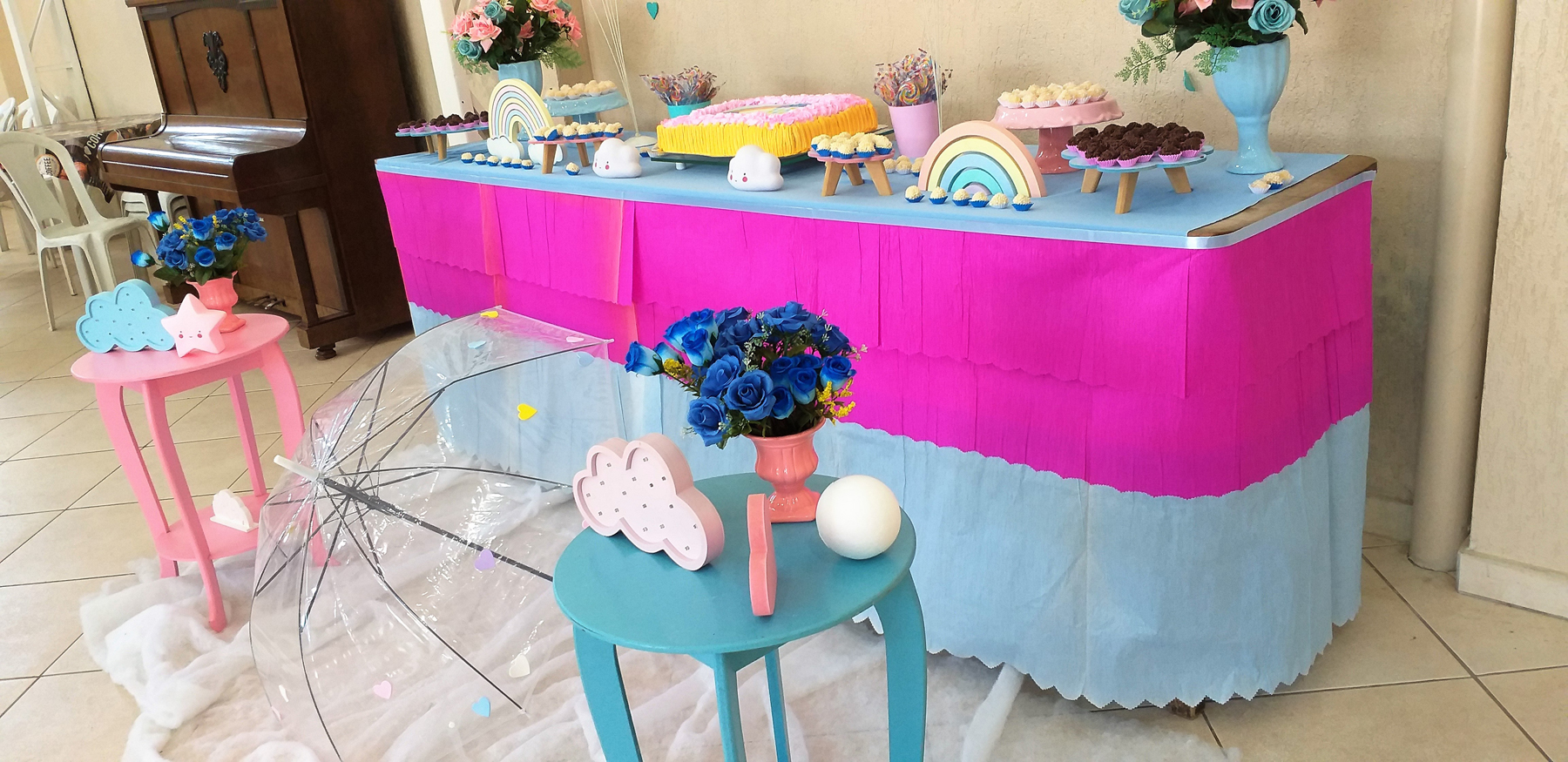 Na comemoração dos aniversariantes desse mês o tema foi “Chuva de amor”