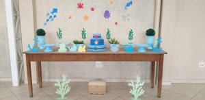 Na comemoração dos aniversariantes desse mês o tema foi “Fundo do Mar” No mês de Maio quem fez aniversário foram: Período da Manhã: Gustavo, Larry,