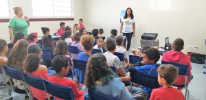 As crianças do projeto apresentaram uma palestra sobre o mosquito da dengue, enfatizando a reflexão sobre a relação entre a proliferação do mosquito, as doenças
