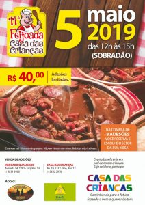 A 11ª Feijoada da Casa das Crianças está chegando! Dia 05 de maio no Sobradão eventos! Agora com mesas reservadas, (comprando 4 ou 8 adesões