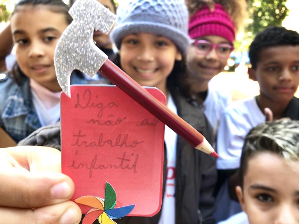 Dia 12 de junho, nossas crianças participaram do Ato Público na Praça Central em conjunto com outros Projetos sobre o Dia Mundial de Combate ao Trabalho Infantil.