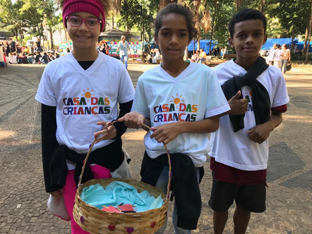 As crianças realizaram uma conscientização a população que estava presente sobre quais os direitos e deveres da criança e entregaram um informativo elaborado por elas.
