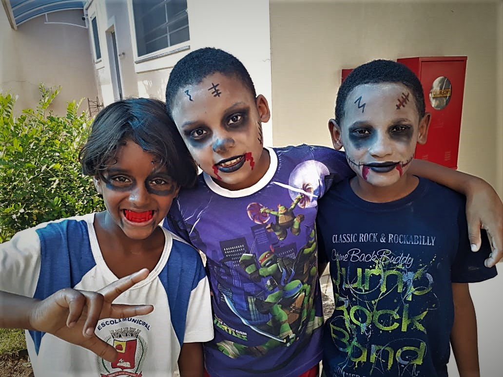 As crianças entraram na brincadeira e se fantasiaram, dia de festa, alegria e diversão!