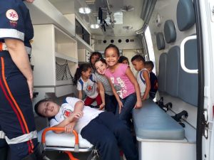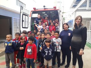 Recebemos a equipe do SAMU que ministrou uma palestra à nossas crianças, elas também puderam conhecer o carro do SAMU e acionar a sirene que foi a alegria de todas as crianças.